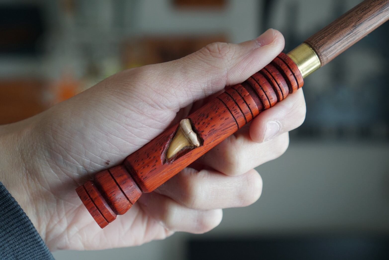 Padoauk & Walnut & a fossilized shark tooth